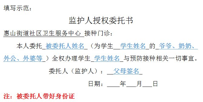 1.接种当天必须由一名监护人陪同前往,非监护人陪同需提供委托书。委托书模板见下: