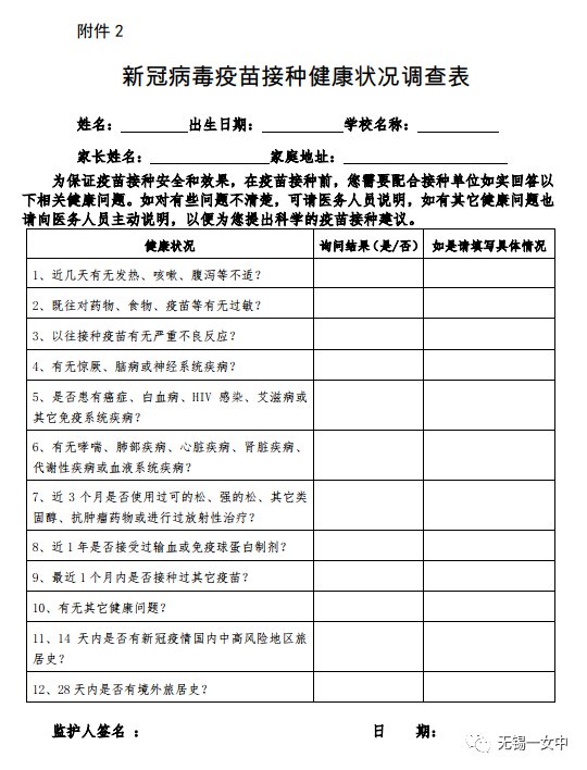 2021无锡一女中初中部第二针新冠疫苗接种时间+地点+流程