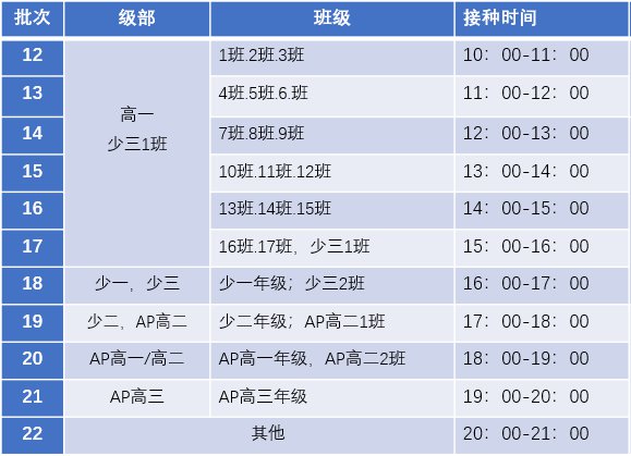 根据上级统一安排部署,结合天一中学实际情况,在天一中学第一针疫苗接种的基础上,统一组织进行12-17周岁在校学生第二针疫苗集中接种。为有序规范开展天一中学学生疫苗接种工作,现就学校新冠病毒疫苗第二剂接种相关工作通知如下: