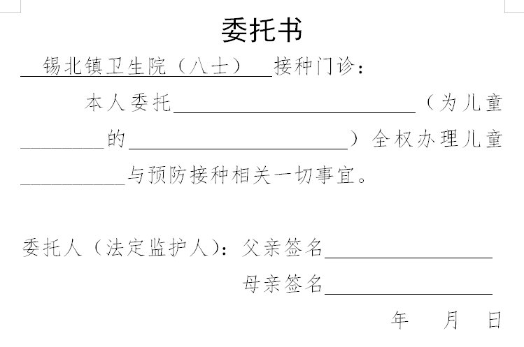 本人委托爷爷姓名/奶奶姓名/外公姓名/外婆姓名(为儿童儿童姓名的爷爷/奶奶/外公/外婆_)全权办理儿童儿童姓名与预防接种相关一切事宜。