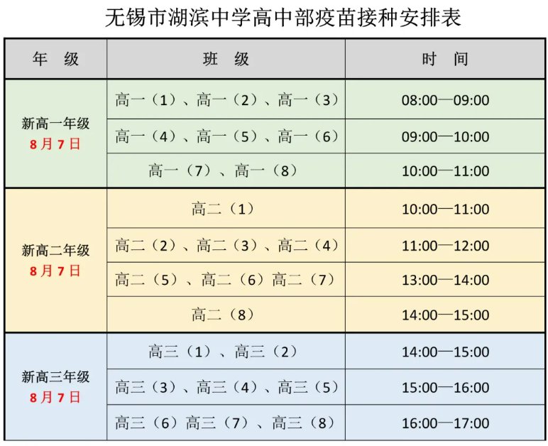 2021无锡市湖滨中学高中学生新冠疫苗接种时间+地址+流程