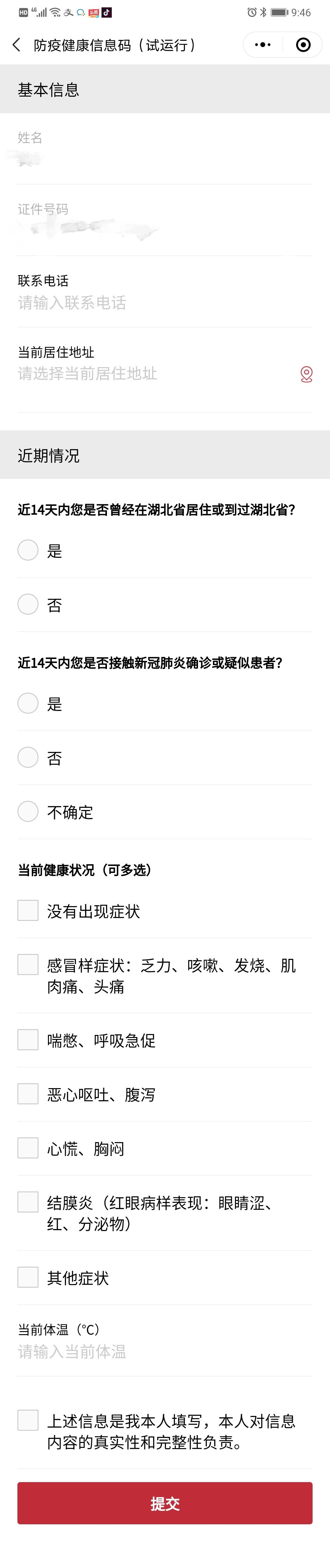 五、填写完毕之后,点击“提交”。即可获取如下的防疫健康信息码的页面!