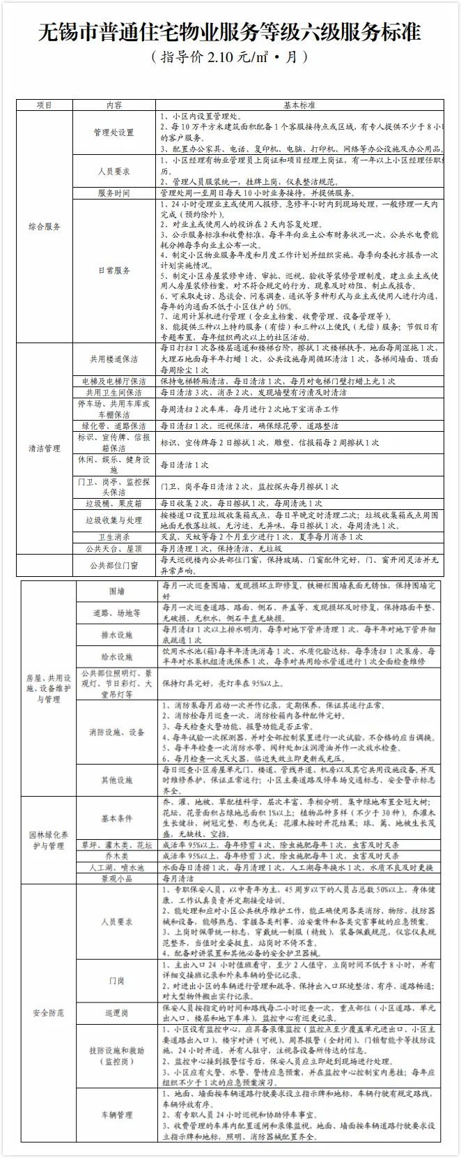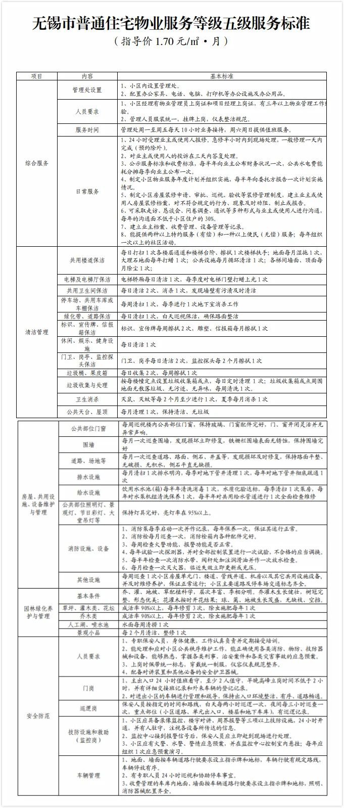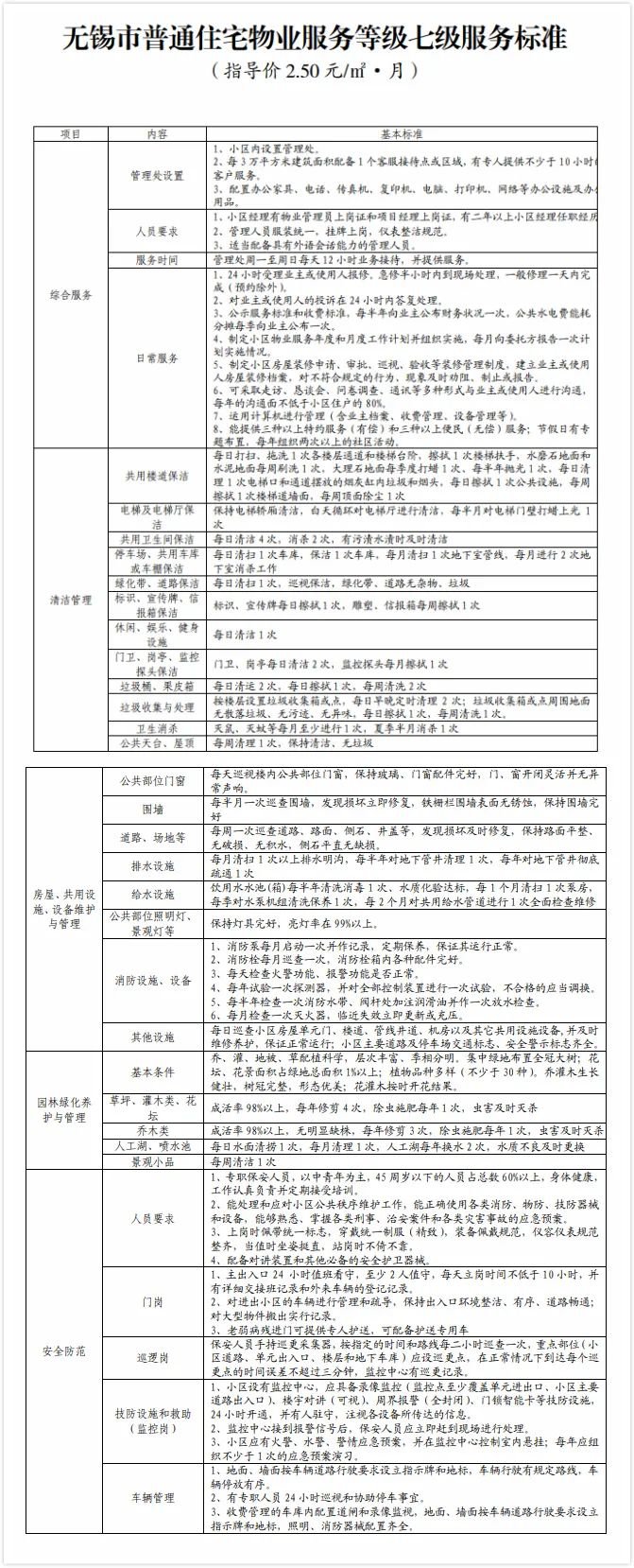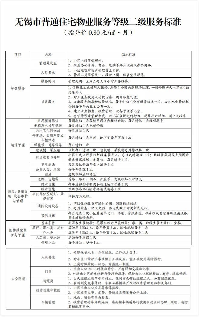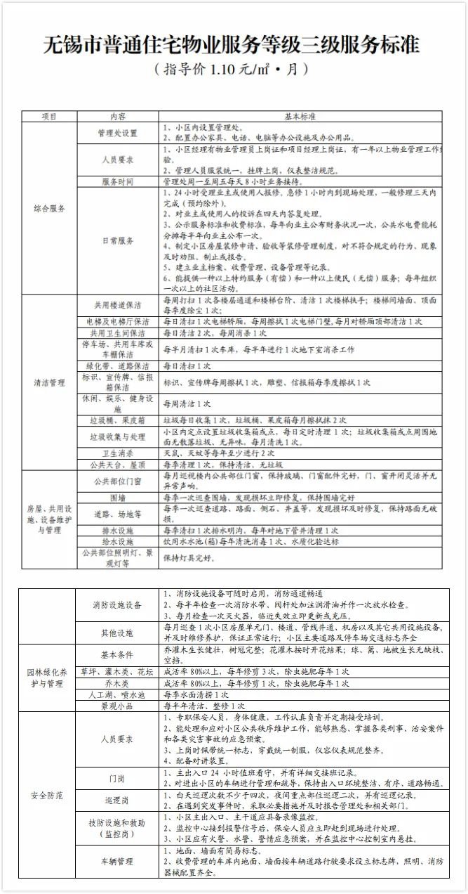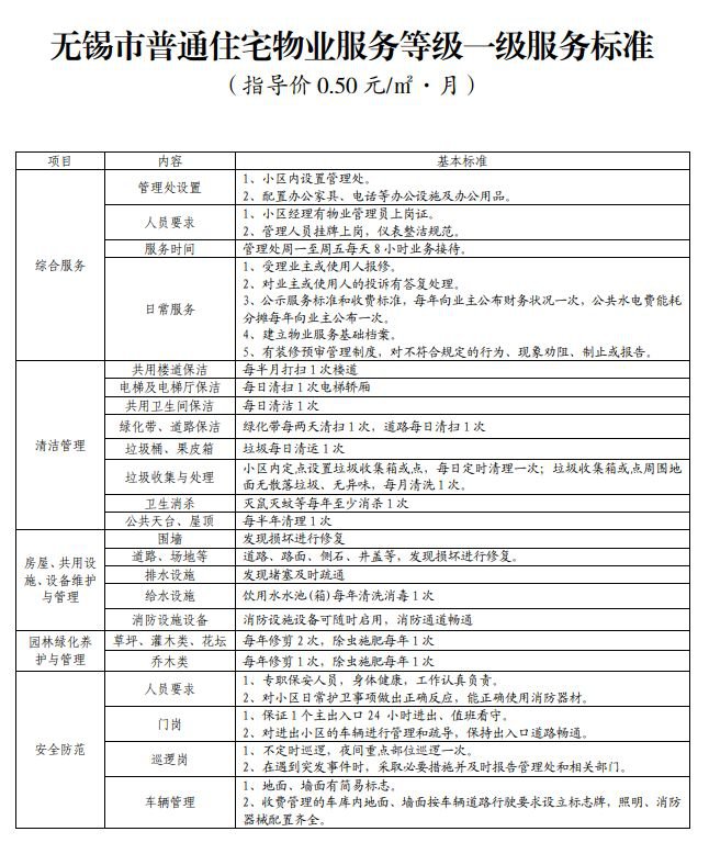 无锡物业服务收费标准(无锡市物业管理费收费标准)