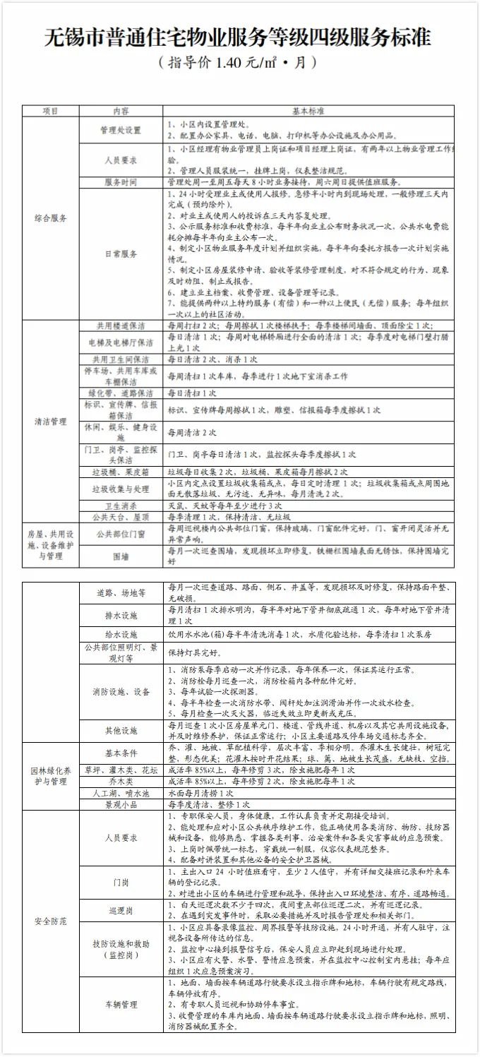 无锡物业服务收费标准