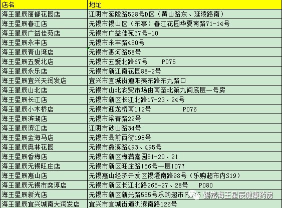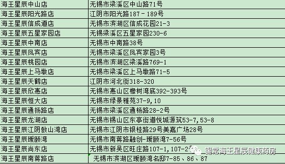 无锡海王星辰连锁药店有限公司61家定点门店