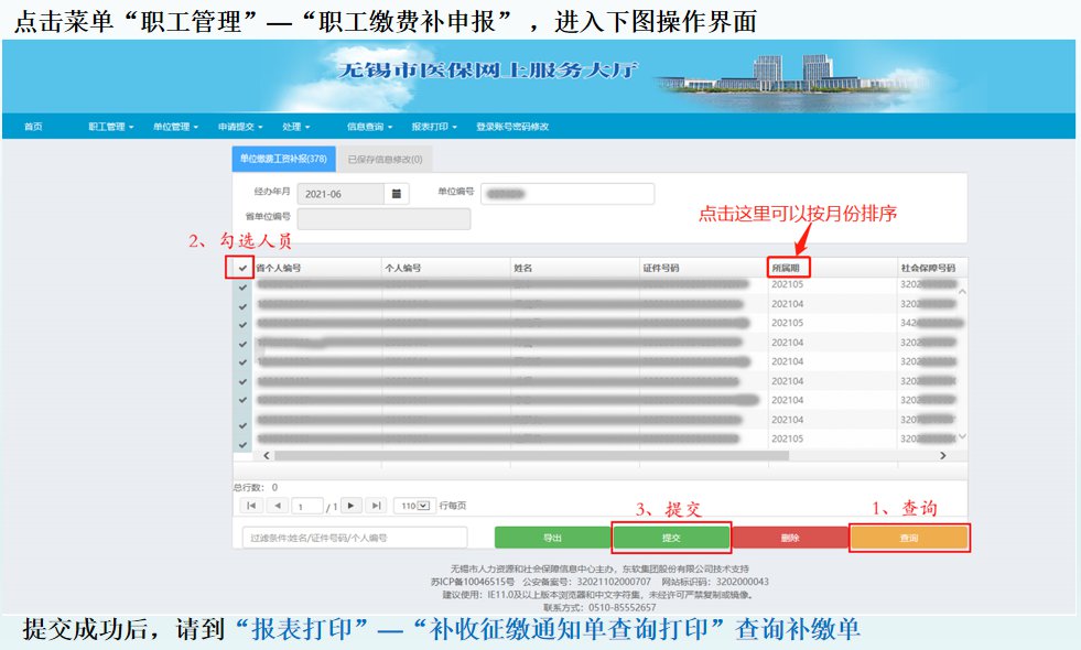 无锡单位职工医保缴费补申报线上办理指南