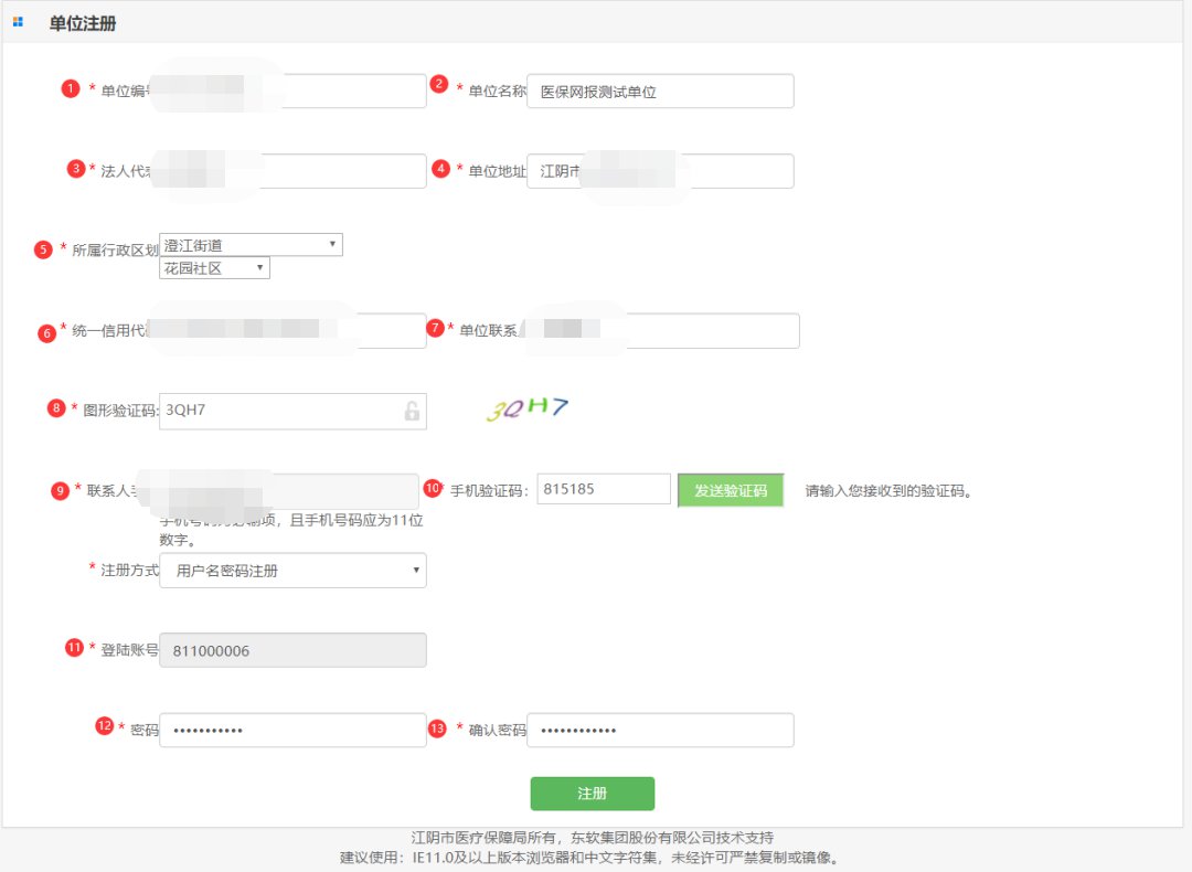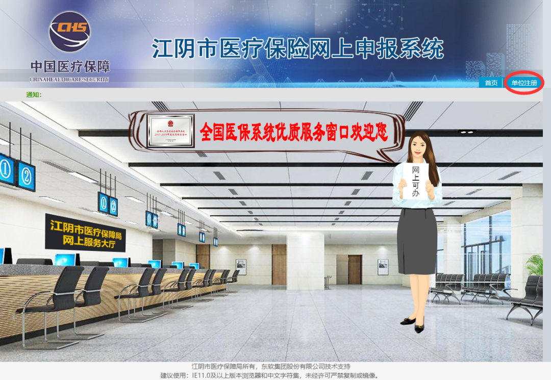 注:新开户单位在收到单位医保编号短信后方可注册“江阴市医疗保险网上申报系统”。