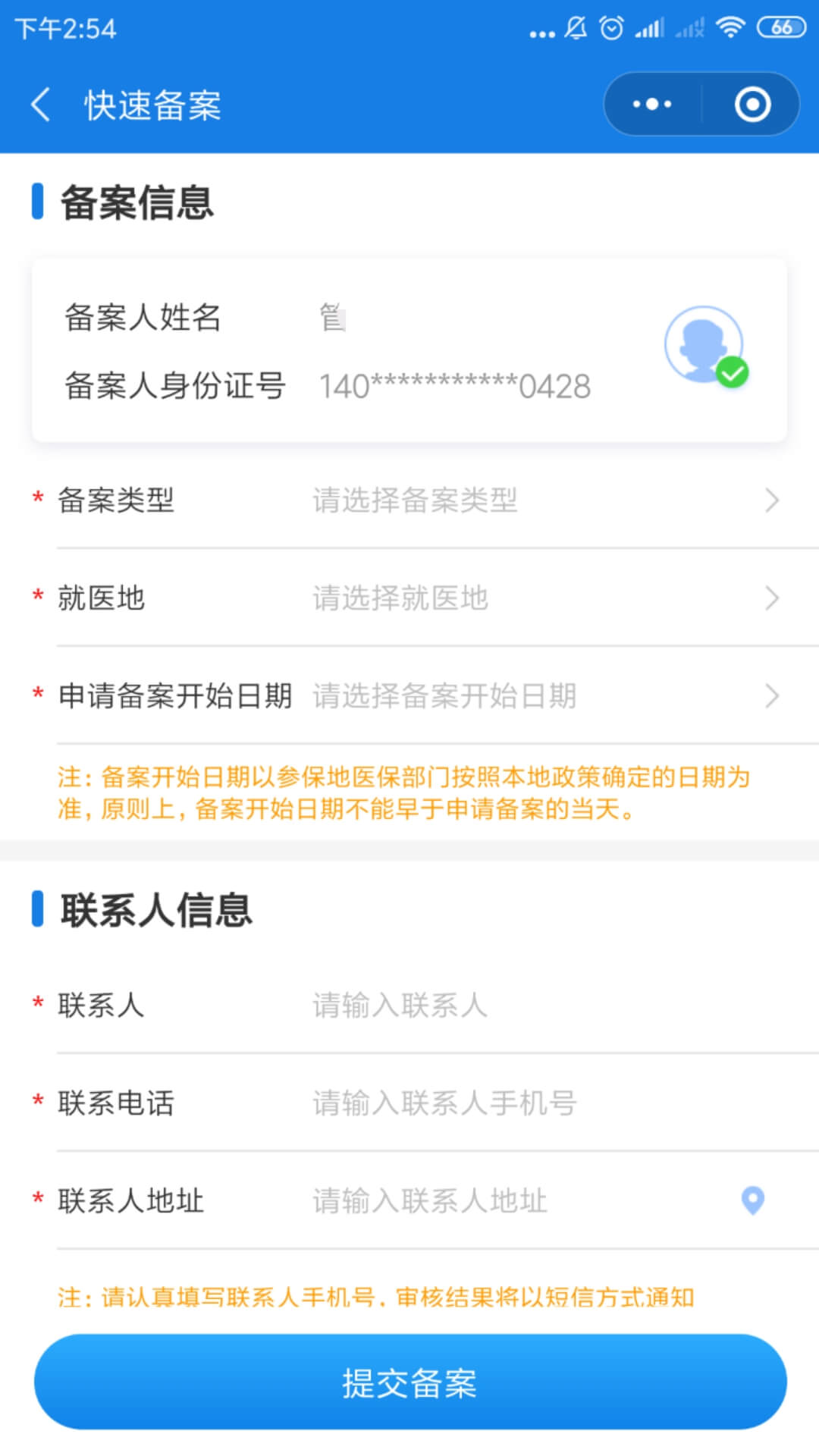 首次使用时 需要参保人本人进行实人认证。认证成功后才可以办理备案申请,本人账户只需要认证一次,下次可直接进入备案。