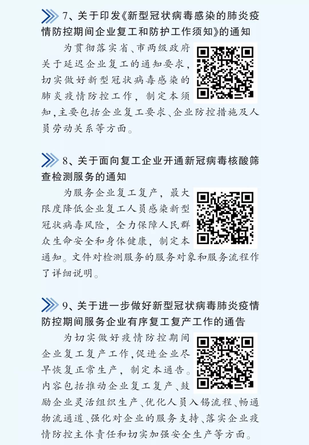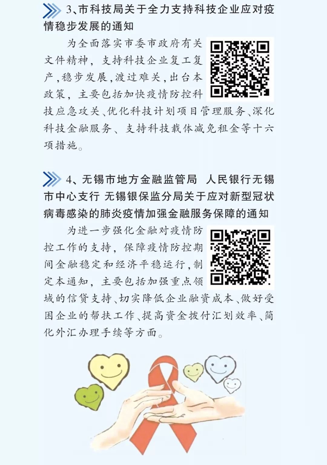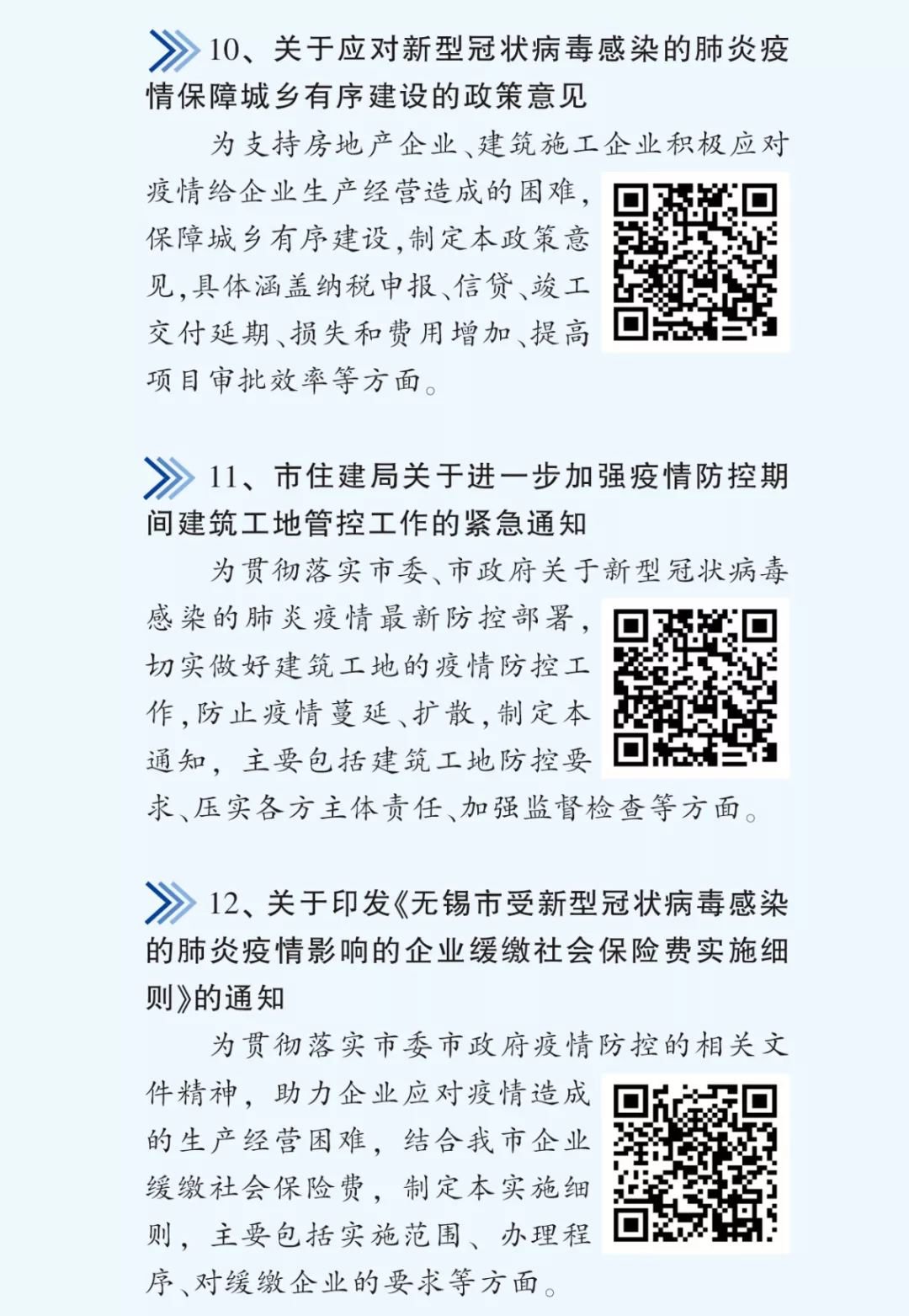 此速查手册是《疫情防控期间国家、省、市惠企政策汇编》的索引目录,汇编收录国家、江苏省、无锡市在疫情防控期间出台的惠企政策,共40篇。为方便企业快速理解掌握政策要点,我们对各项政策名称进行规范表述,摘编了政策的主要内容,并将政策同步上传到“无锡市企业服务云平台”,企业可以通过扫描每项政策的“二维码”,阅读详细内容。