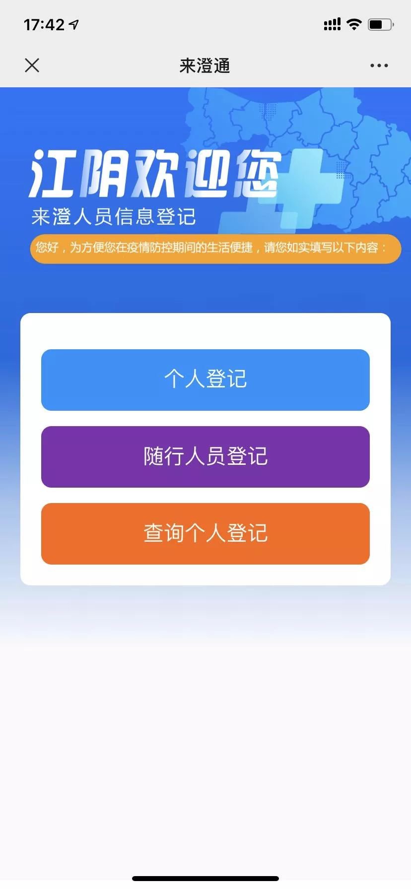 登录“来澄通”平台,进入登记页面后,根据自己的需要选择: