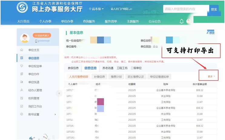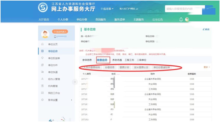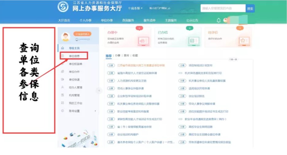 3、查询参保信息(养老、工伤、失业保险),从“单位信息”进入