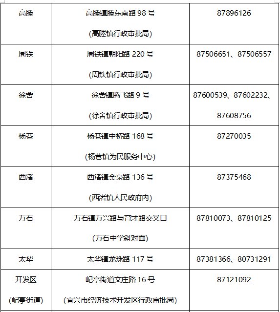 宜兴人社业务服务网点地址+电话 宜兴人社局电话