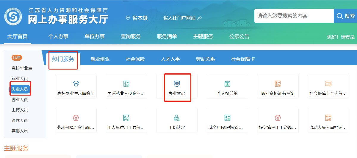 (二)选择“政务服务”——“失业登记”