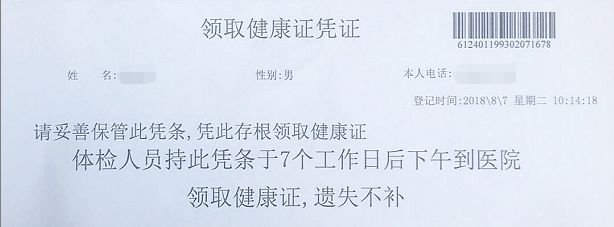 2、《健康合格证明》请于体检七个工作日后的每周二的下午至本机构体检中心领取;(领取健康证明凭本人有效证件或体检指引单存根联)