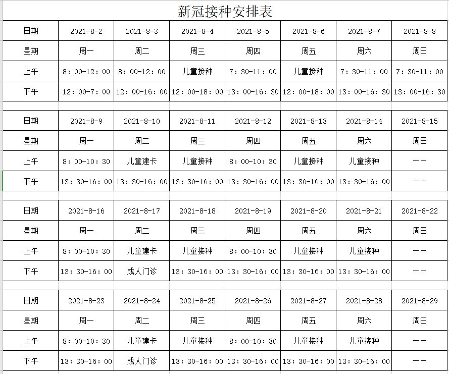 青阳社区卫生服务中心新冠疫苗8月接种告知