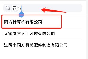 输入企业名称,支持模糊搜索,以“同方计算机有限公司”为例,输入“同方”即可显示,如下图: