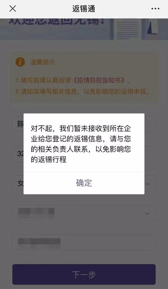 2、接到企业复工通知的人员,通过“返锡通”平台,主动登记个人相关信息和出行方式。