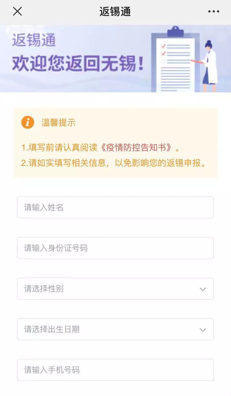 无锡“返锡通”信息申报操作指南