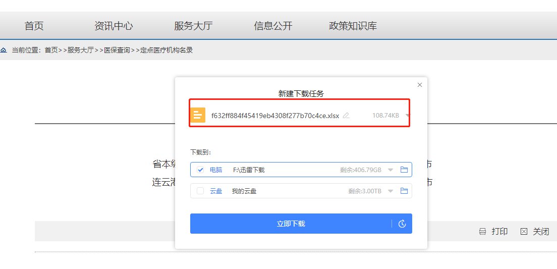 4)选择你所要查询的城市,即可下载该城市的医保定点医疗机构名录。