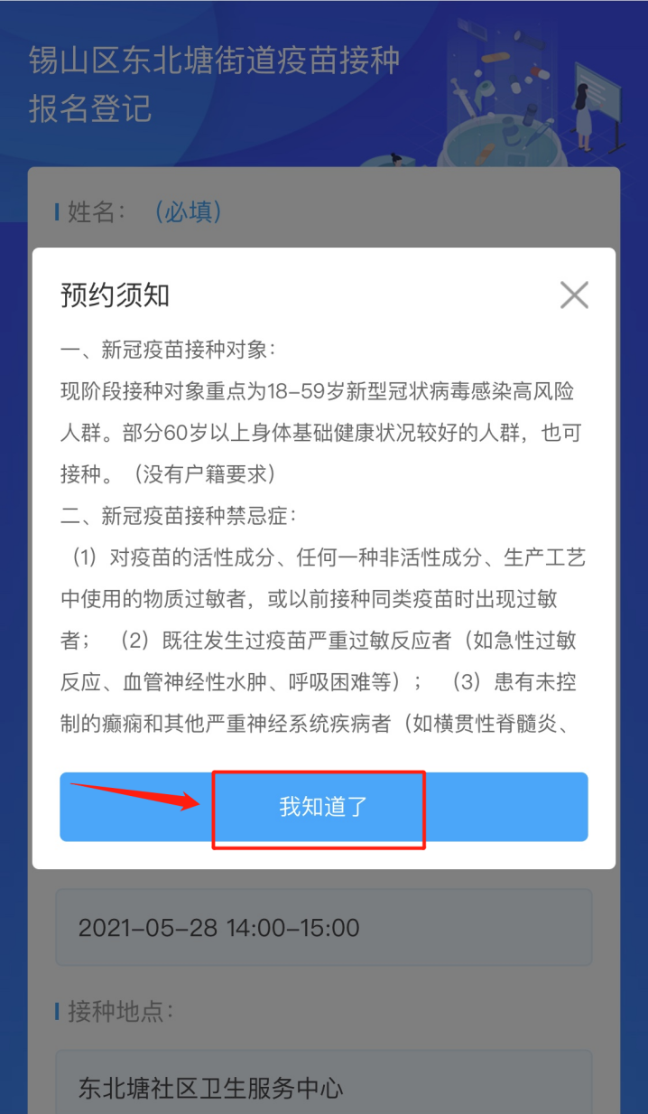 ➤ 认真阅读“预约须知”后,请点击“我知道了”,进入下一界面;