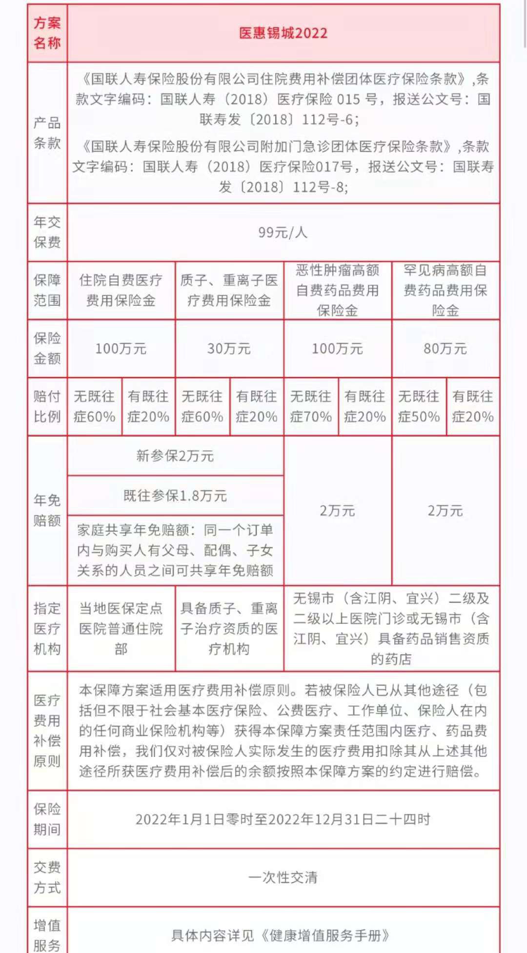 升级后: 2022年“医惠锡城”保障一住院自费医疗费用保险金既往参保过的老用户免赔额降低到1.8万元,(新参保用户免赔额为2万元),老用户的免赔额降低,产品更加利民。