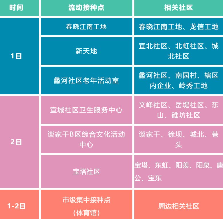 鸿泰苑睦邻中心临时接种点、鸿运一社区临时接种点:13:30—19:30。