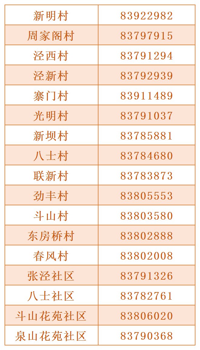 锡北镇各村(社区)联系电话