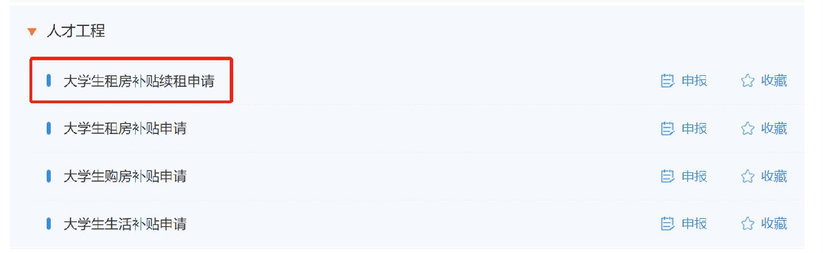 5、点击“人才工程”选择“大学生租房补贴申请”一行中的“申报”