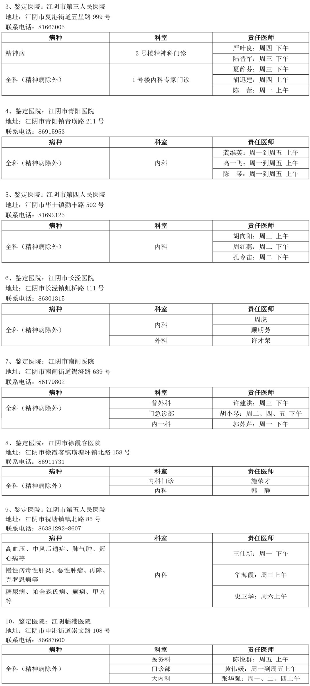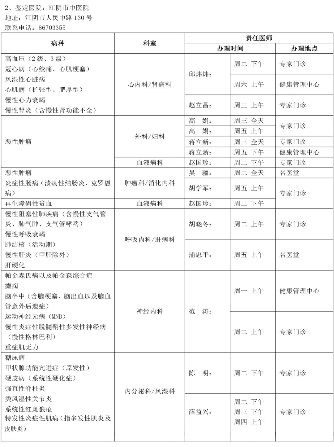 友情提醒:各定点医院责任医师坐诊信息会随医师工作安排稍有变动,以医院导医台当日时间、地点为准。