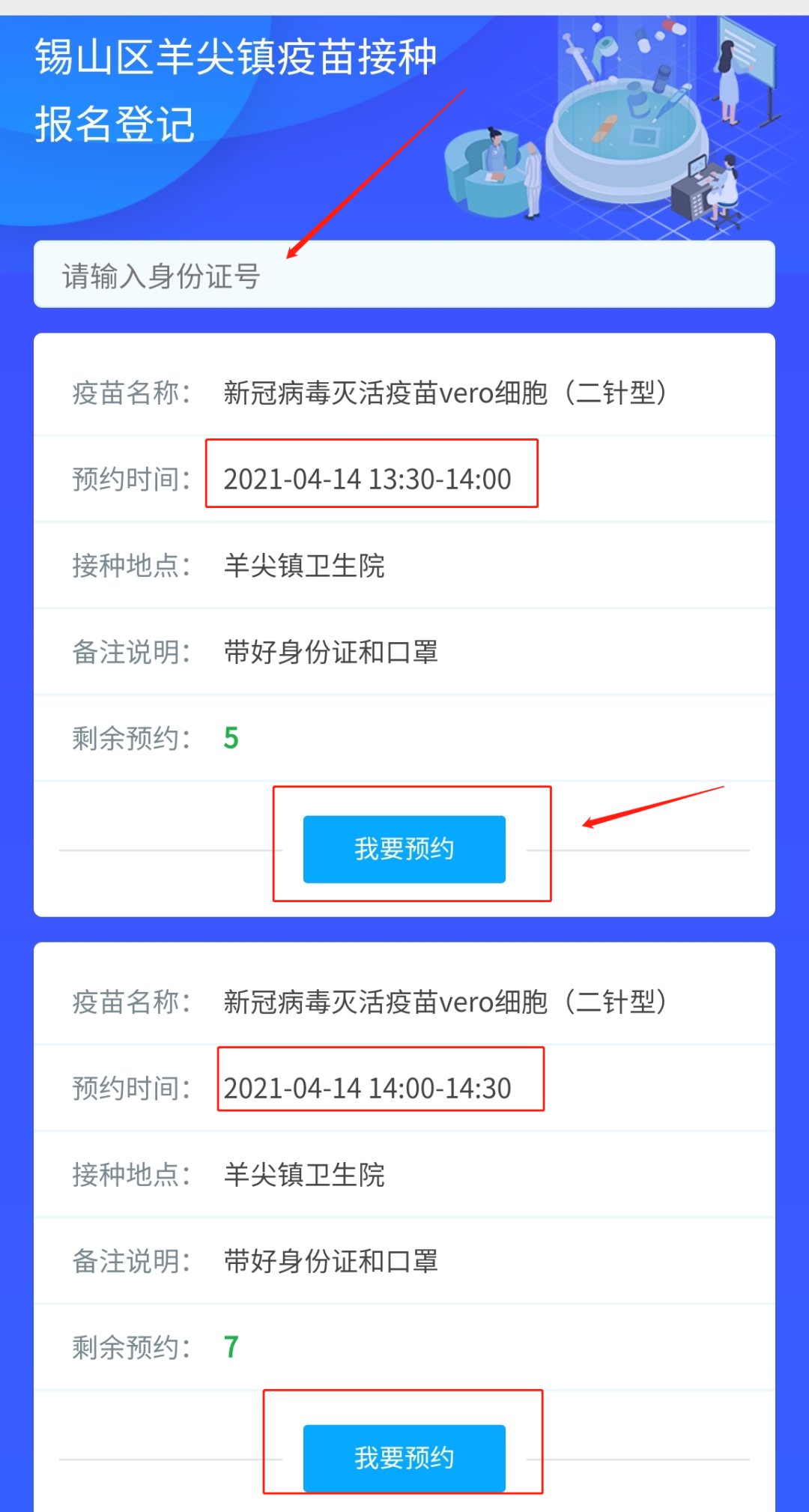 2021年无锡羊尖镇新冠疫苗预约系统预约流程: