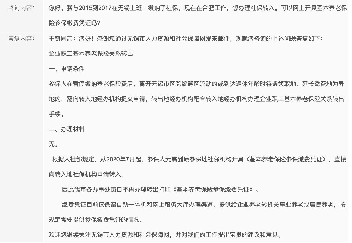 因此无锡市各办事处窗口不再办理转出打印《基本养老保险参保缴费凭证》。
