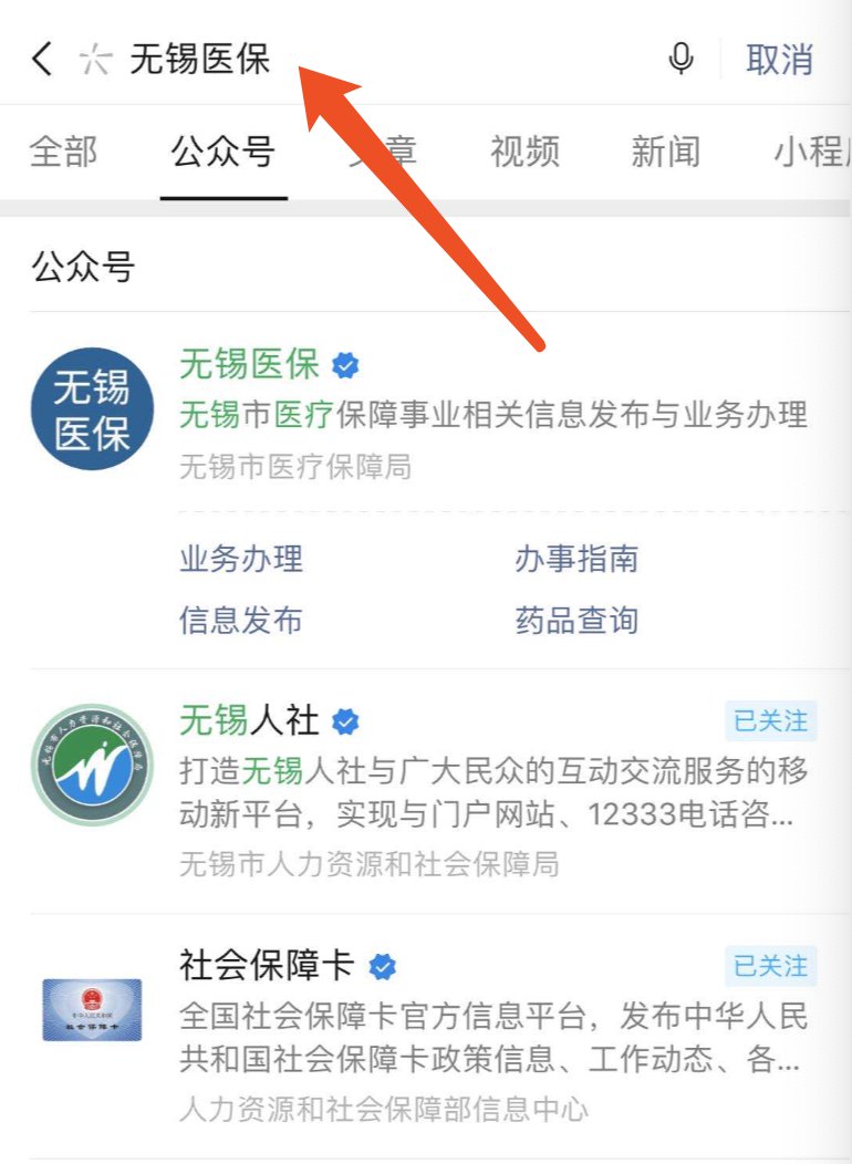 1、关注微信公众号“无锡医保”
