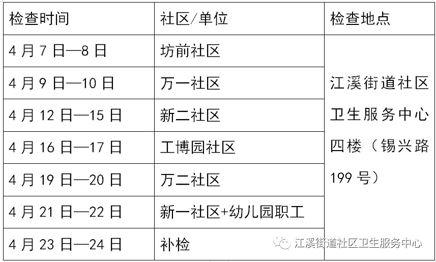 2021年度江溪街道“两癌”筛查服务日程安排: