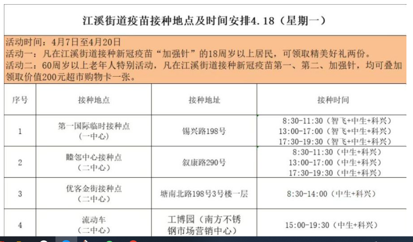 无锡江溪街道新冠疫苗接种安排: