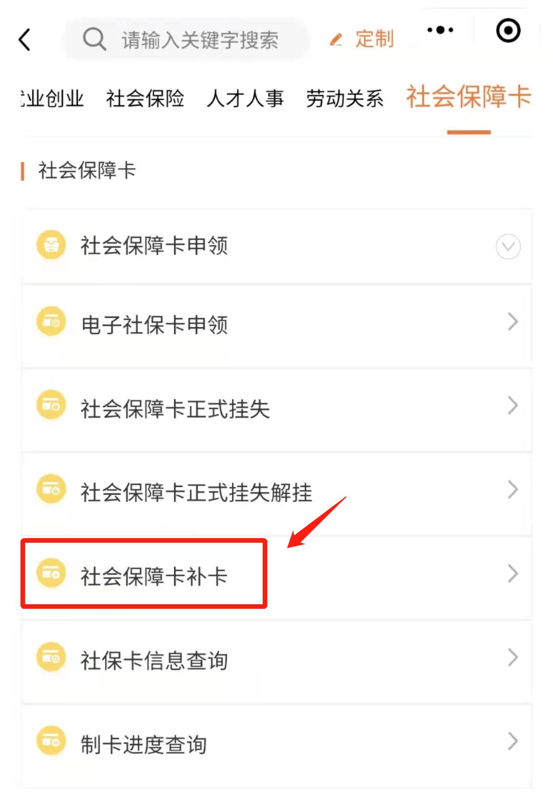 四、选择“全部”,找到“社会保障卡”,点击补办选项即可