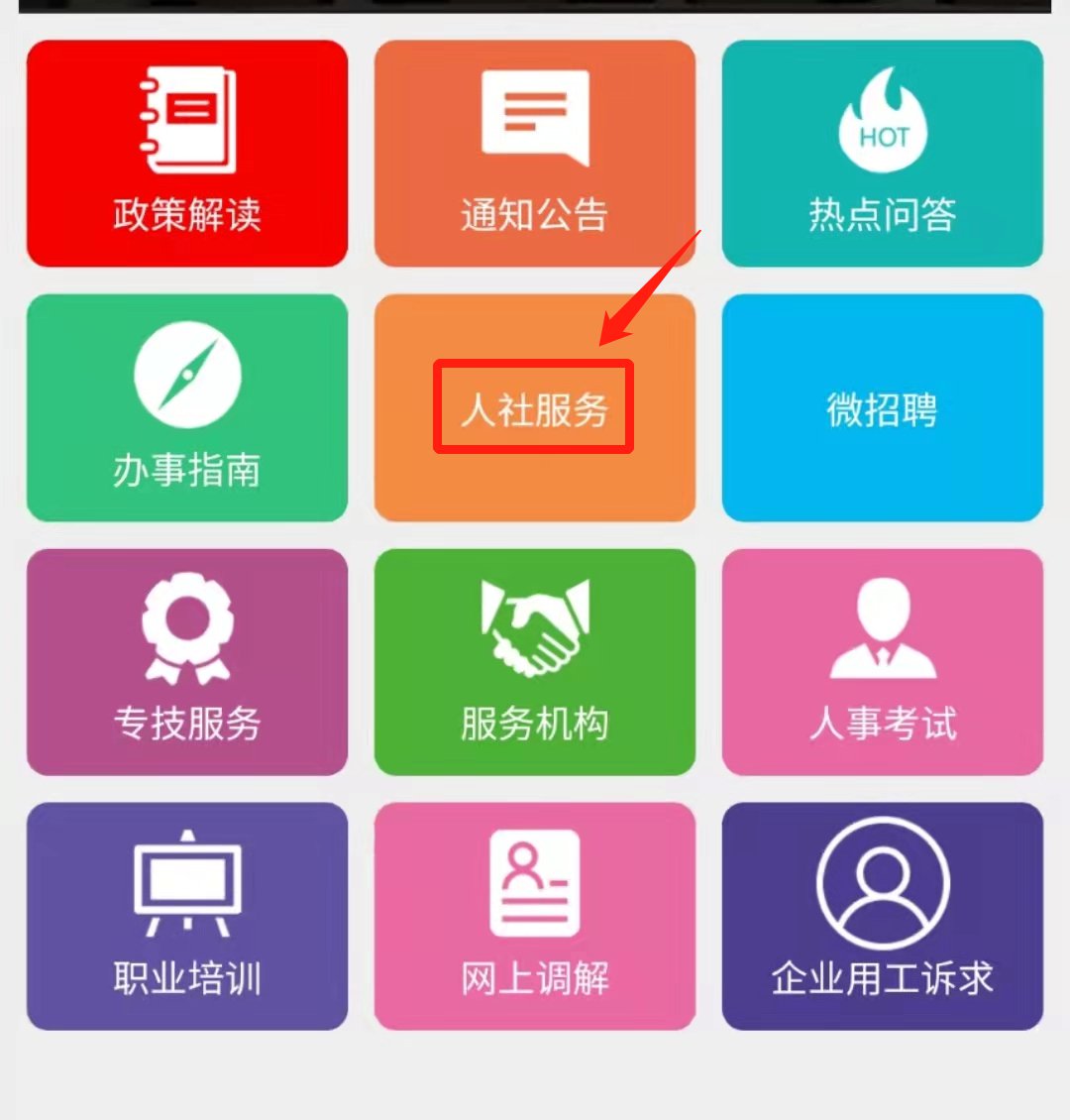 二、点击“人社服务”