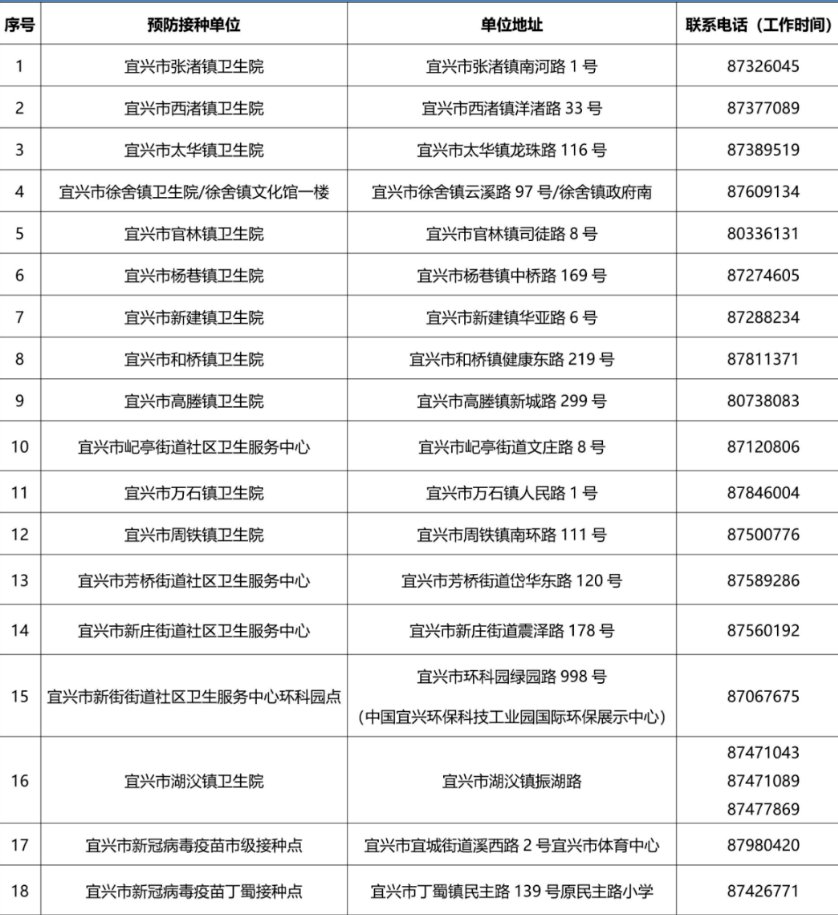 宜兴新冠疫苗接种单位一览表:(点此查看大图)