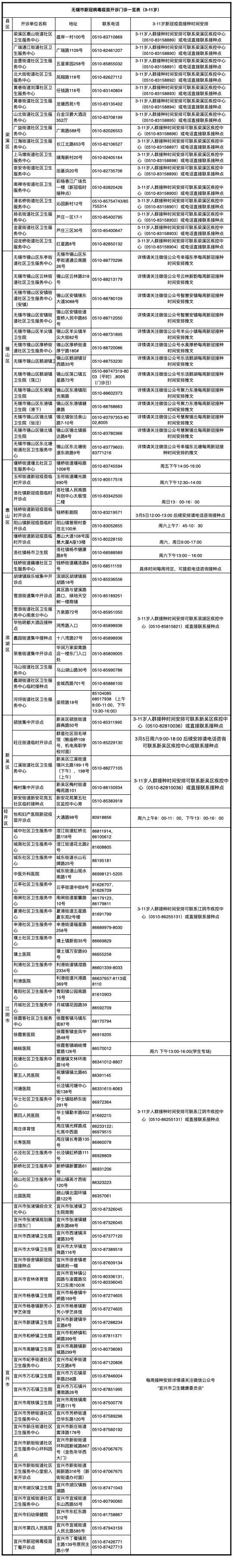 无锡市新冠病毒疫苗开诊门诊一览表(3-11岁)