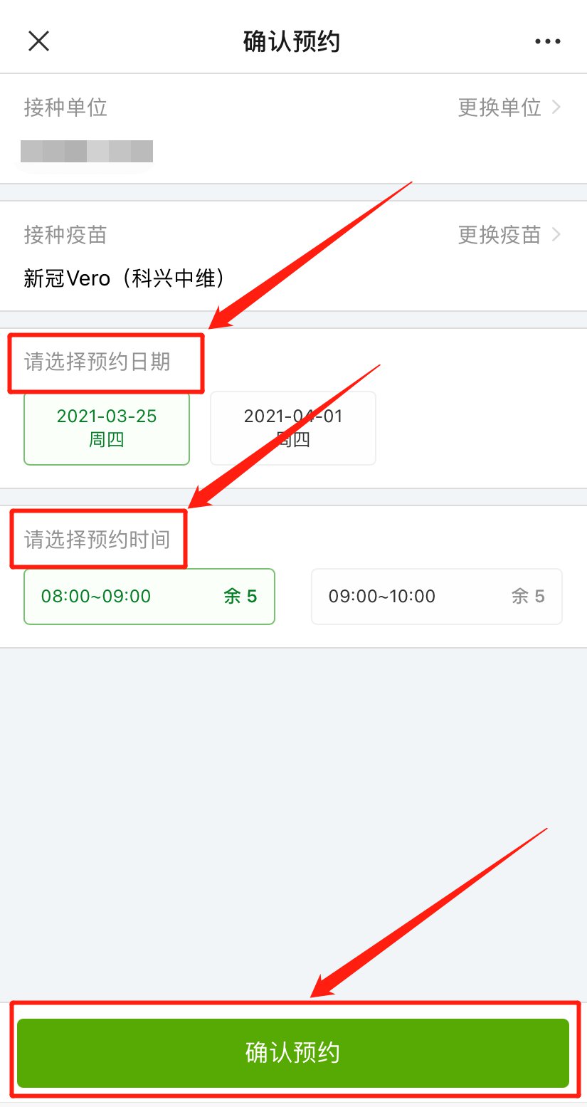 在第一针次预约接种后,请配合接种医生,完成第二针次新冠疫苗的预约接种即可。