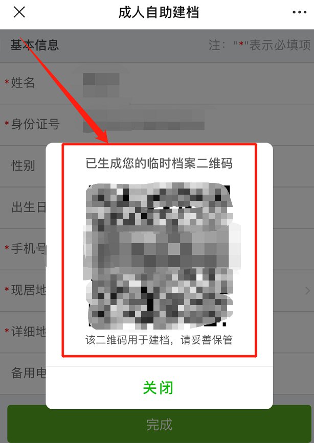点击进入预防接种-成人预约(新冠)界面,填写个人信息,生成建档二维码,此码可供接种单位扫描快速建档。