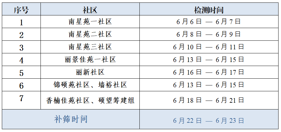 2022年6月6日至6月23日每周一至周六上午8:00-11:00下午13:30-16:30(全员核酸日下午至15点)
