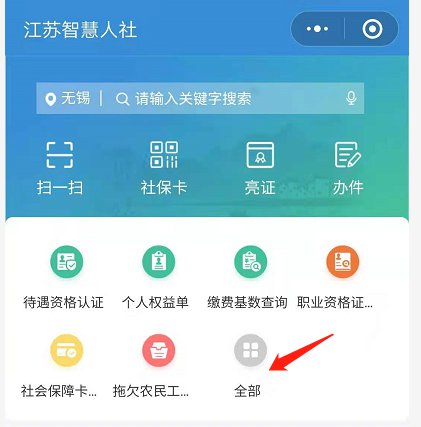 1、微信搜索小程序“江苏智慧人社”小程序,进入后点击“全部”,在【社会保险】中点击“养老待遇发放查询”。