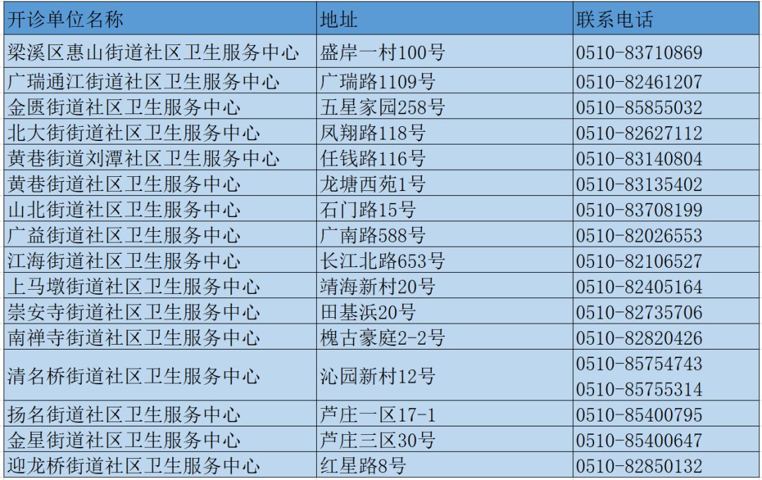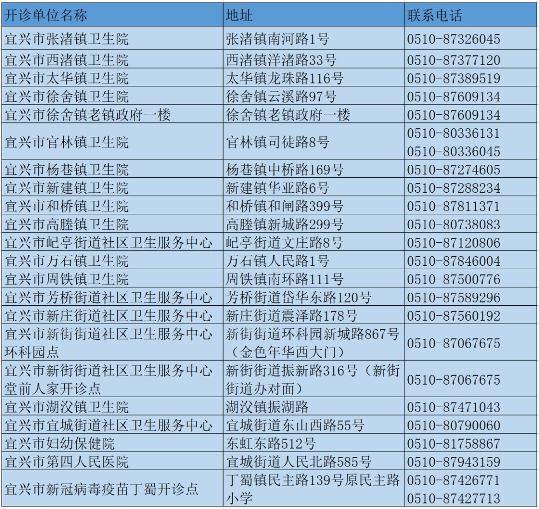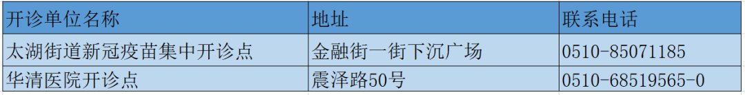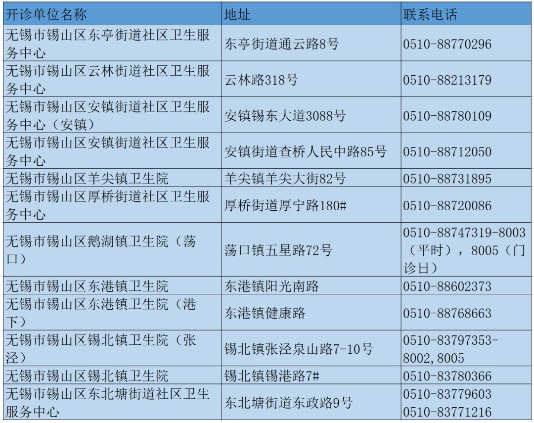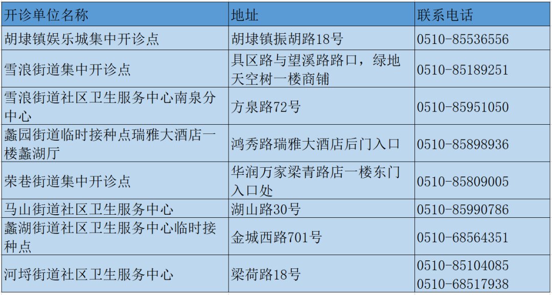 无锡市新冠疫苗接种门诊一览表(无锡发布2022年1月6日更新)