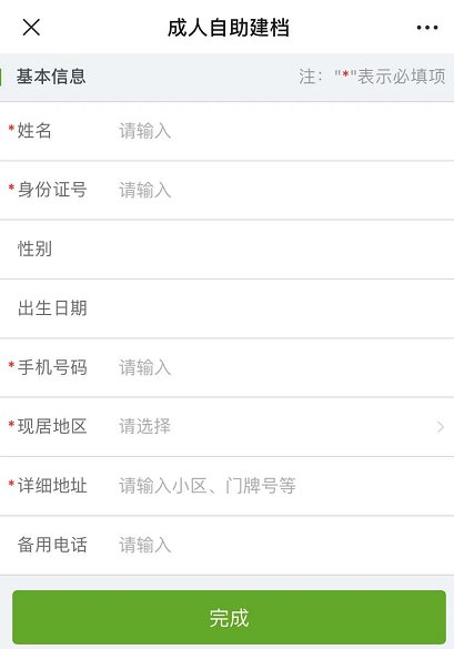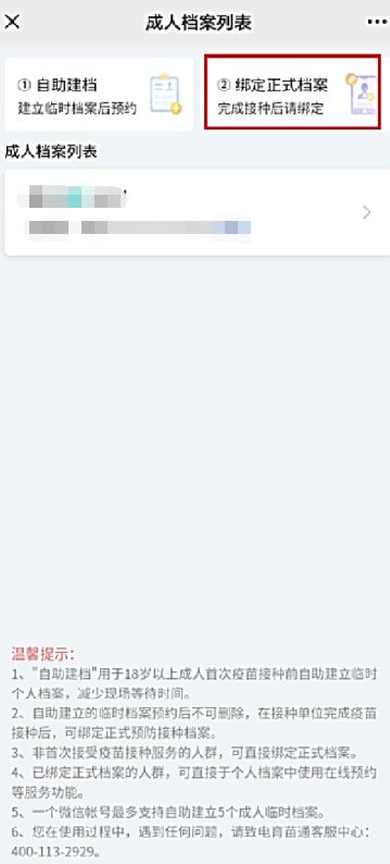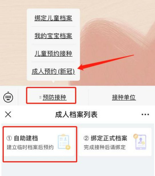 1、打开“育苗通”公众号—"成人预约(新冠)",未接种过的进行自助建档,已接种过的进行绑定正式档案;