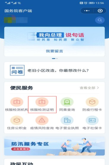 三、无需纸质报告的患者,打开您的微信,搜索“国务院客户端”小程序,点击“核酸检测证明”,输入姓名、身份证信息后点击“立即查询”,检验时间、结果、检测机构信息自动显示。