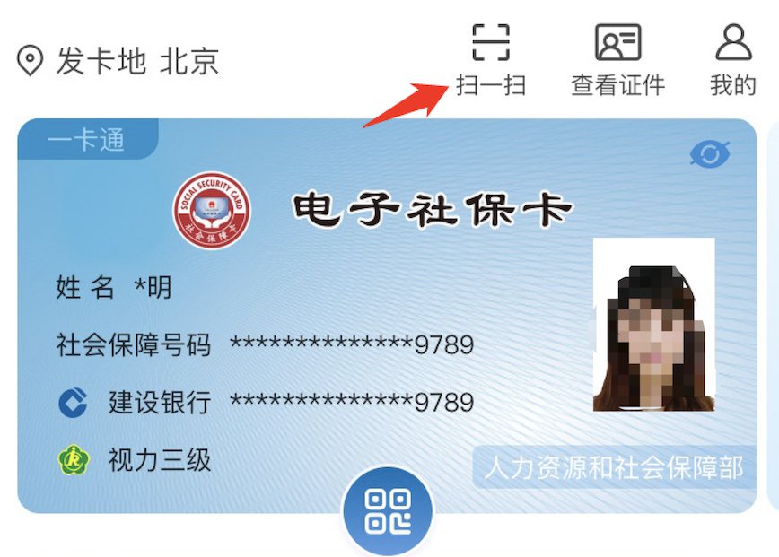 打开你的电子社保卡,箭头指示的这个小小的按键就是二维码展码功能↓