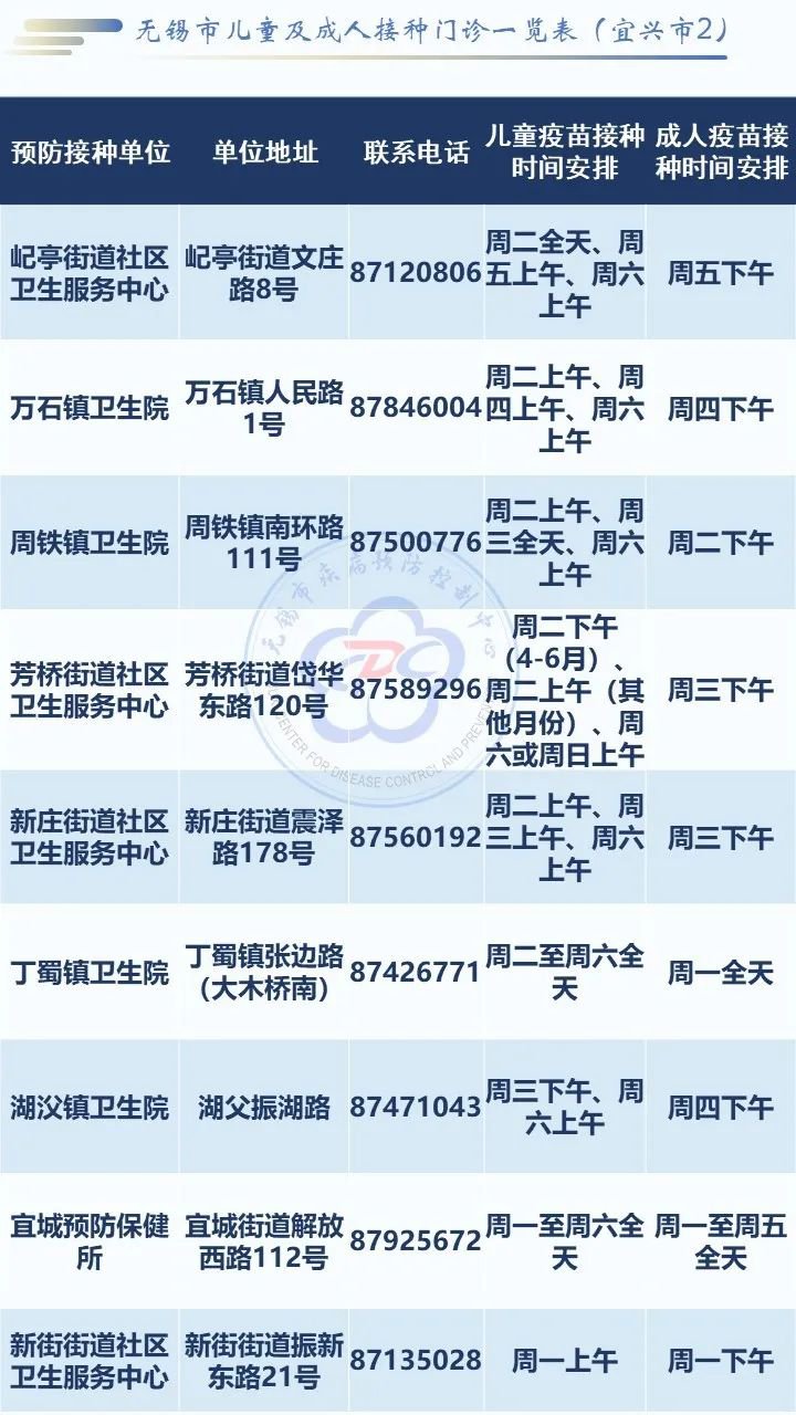 宜兴疫苗接种门诊一览表 宜兴疫苗接种点最新