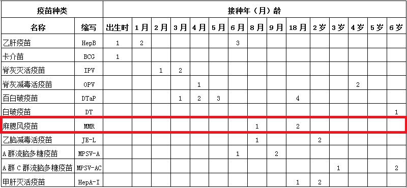 接种程序:2019年10月1日(含)后出生儿童,8月龄接种第1剂麻腮风疫苗,<12月龄完成,代替原先接种的麻疹风疹联合疫苗(简称麻风疫苗),18月龄接种第2剂麻腮风疫苗,<24月龄完成。
