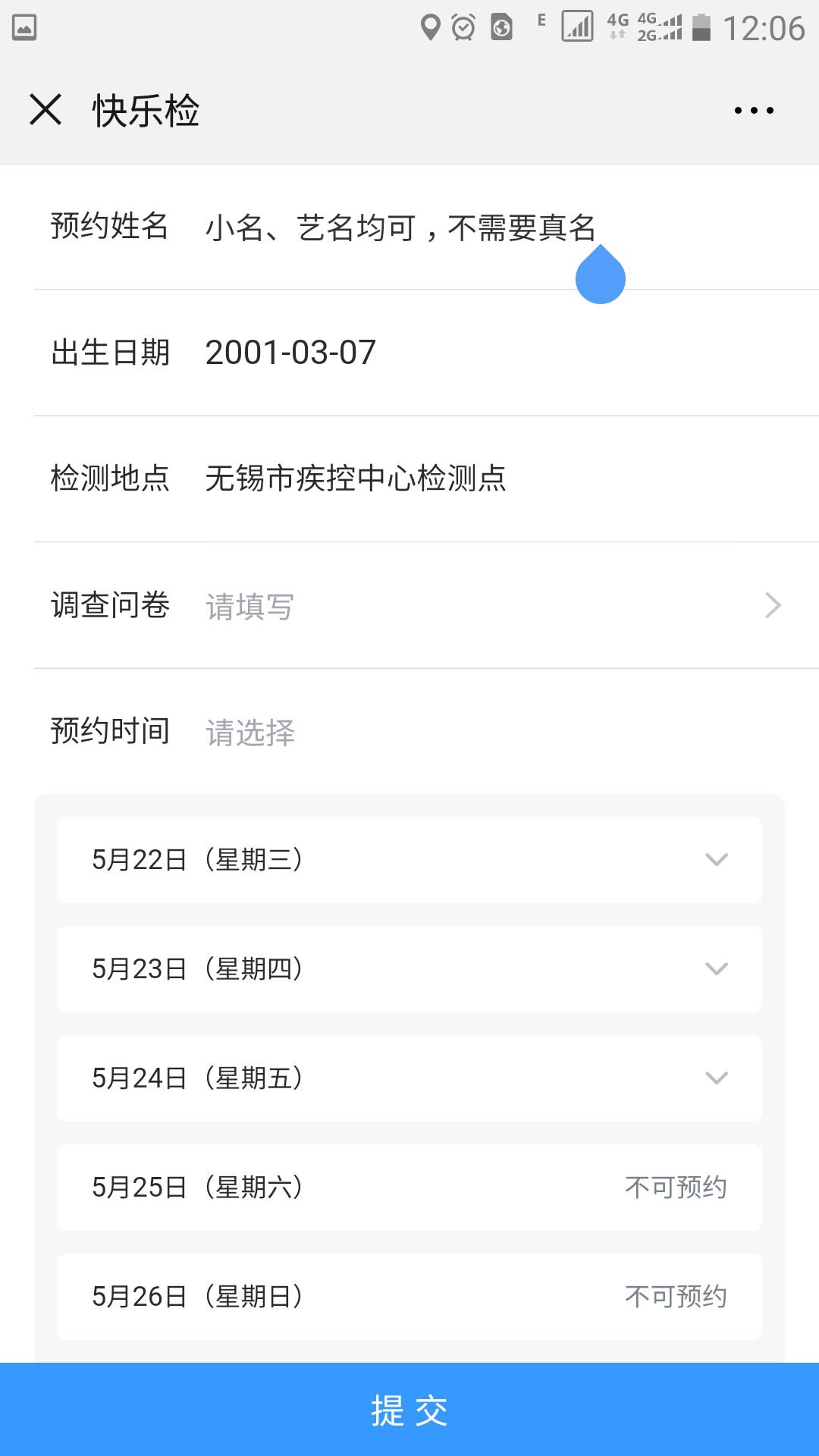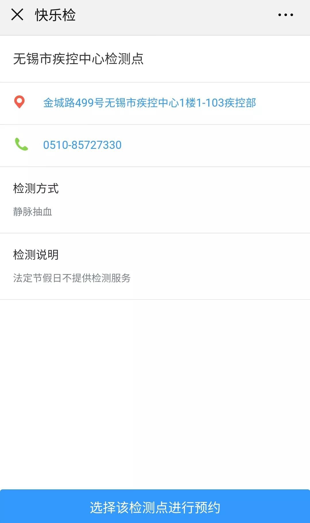 点击页面底部的“选择该检测点进行预约”,进入以下界面:
