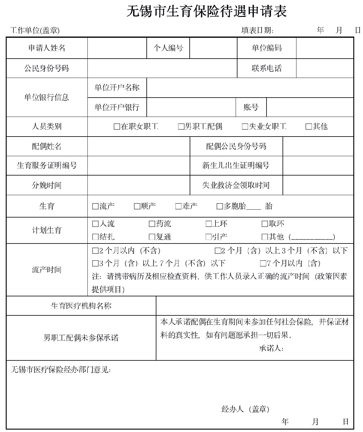 一、无锡生育保险待遇申请表